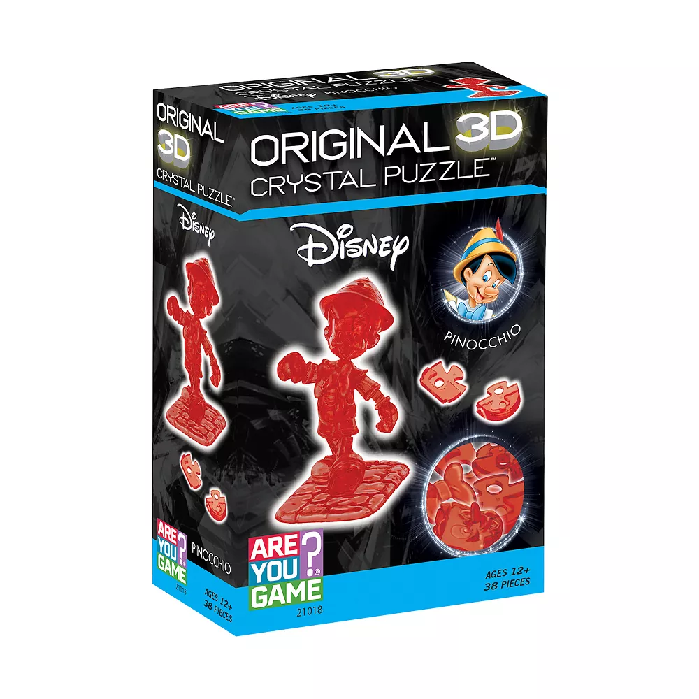 The Disney Pinocchio Crystal Puzzle is a joyful interpretation of everyone’s favorite aspiring puppet-boy. This sleek, translucent, crystalline puzzle has 38 unique interlocking pieces. When you’ve pieced it all together (be ready for a challenge), this happy, apple-red Pinocchio strolls happily down the street, exploring his newfound freedom.
