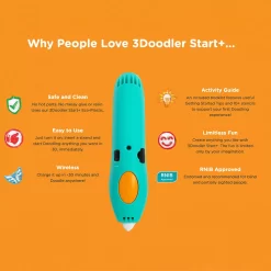 The 3Doodler Start+ Essentials Pen Set is designed with no external hot parts for safe use. With the press of a button, plastic extrudes and hardens rapidly allowing kids to literally create anything!