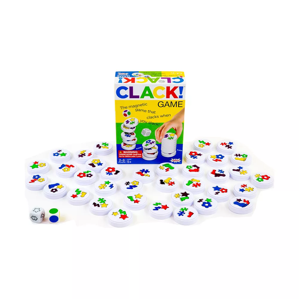 Clack!’s constant action and easy-to-learn rules have made it a favorite game among children of all ages. Kids love the fast play, and the way the safe magnetic discs connect with a satisfying “clack”.