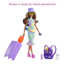Inspired by the Barbie It Takes Two series, Teresa doll is ready to set off to her next destination with her puppy and more than 10 travel accessories.