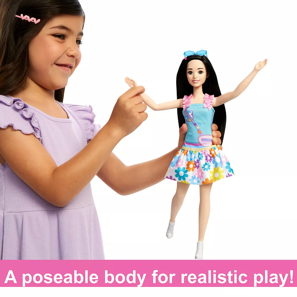 - Inspired by her character in the My First Barbie YouTube series, Renee is a poseable 13.5-inch doll with a soft torso and limbs that make her easy to handle, carry around and dress.