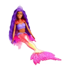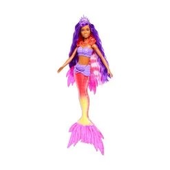 - Barbie doll features a magical mermaid look, complete with extra-long purple hair and a beautiful ombre tail with premium touches and sculpted scales.