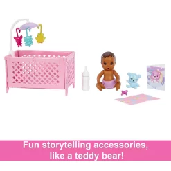 - This dreamy set features Skipper doll, a baby doll with cool action, a crib with mobile and 4 storytelling pieces!