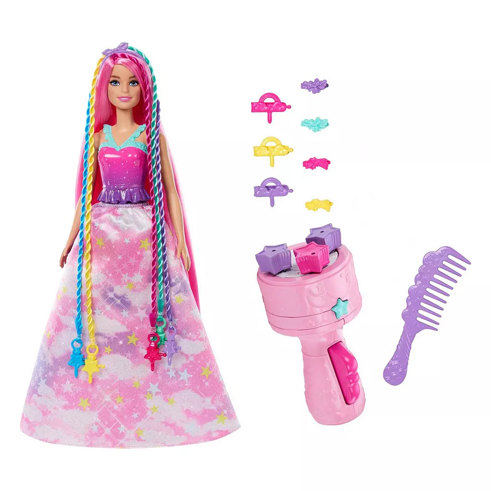 - Includes 1 Barbie® doll, 1 comb, 1 headband, 1 hair twisting tool, 3 hair clips and 4 barrettes. Barbie® doll cannot stand alone. Colors and decorations may vary.