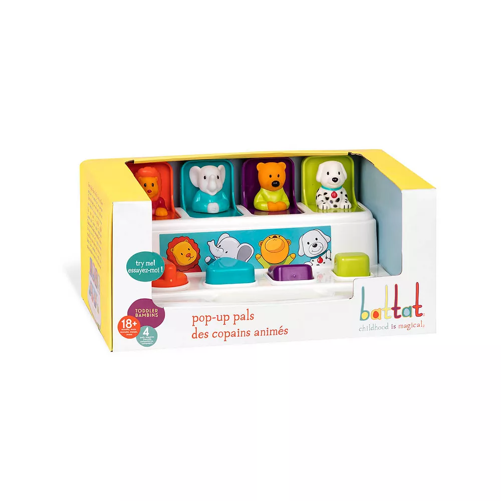 Four fun friends are ready to pop out and play with this toddler toy from Battat.