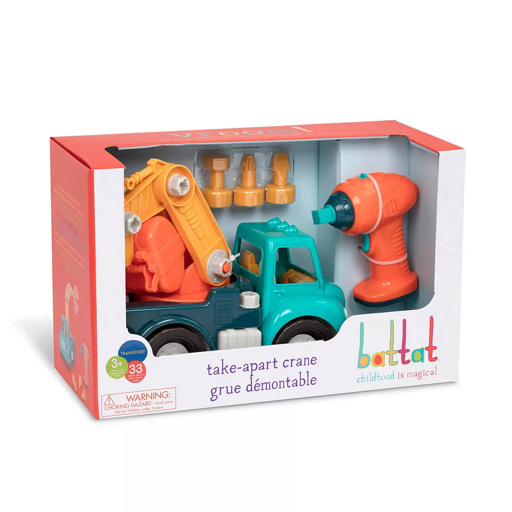 - 1 Take-Apart Crane with 1 toy drill and 3 bits