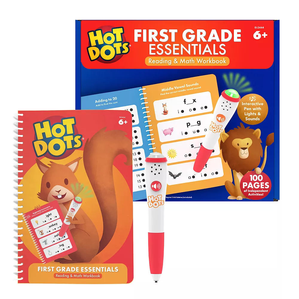 Independent learning really hits the spot with Hot Dots First Grade Workbook! Designed specifically for 1st Graders by educational experts, this set features an interactive, electronic Hot Dots pen with light and sound effects and 100 pages of standards-based, foundational 1st Grade reading and math activities.