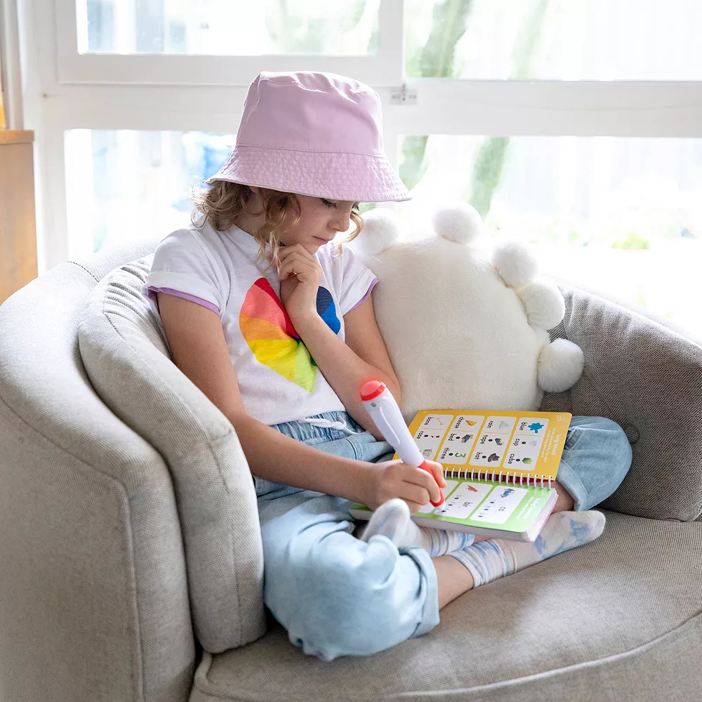 - Provides audio feedback and lights up green for correct responses and provides gentle redirection and lights up red for incorrect answers. Sounds can be muted