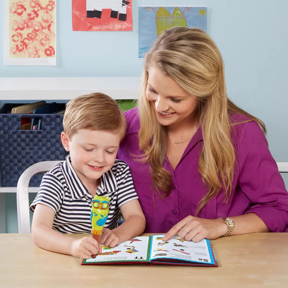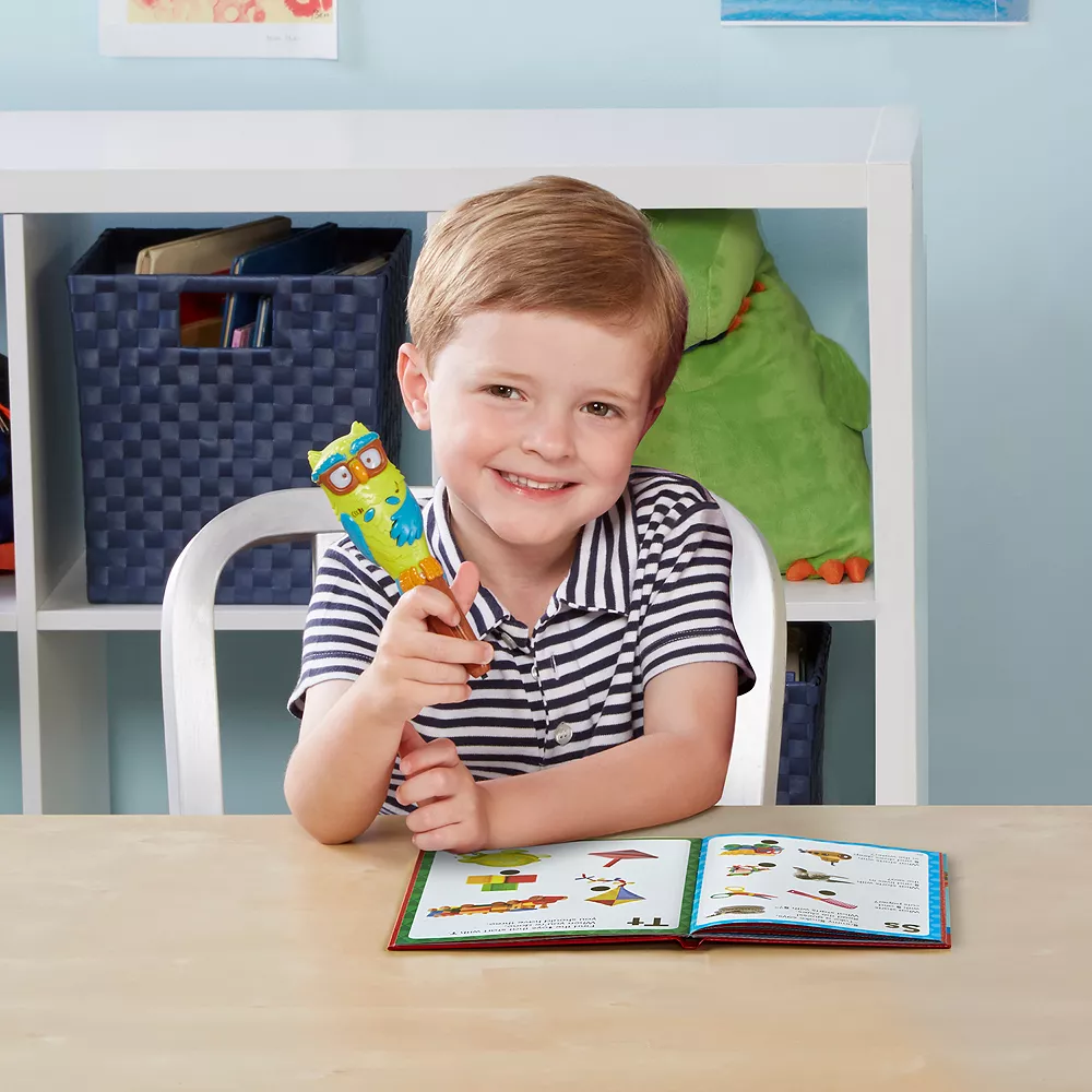 - Ollie–the Talking, Teaching Owl pen responds with green & red lights & has 17 speech sound-effect responses