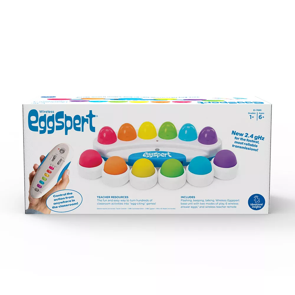 - Includes Wireless Eggspert, 6 wireless student buttons, wireless teacher remote, and guide. Additional student buttons sold separately.