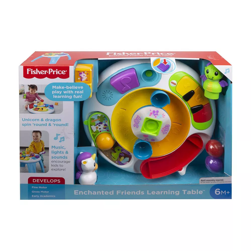 The Fisher-Price Enchanted Friends Learning Table is loaded with exciting activities for your baby to stack, spin, flip, and press all play time long!