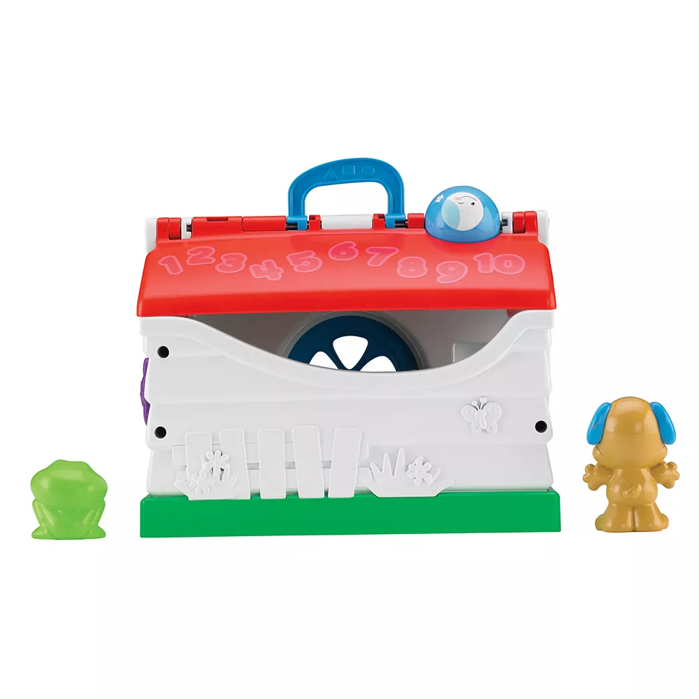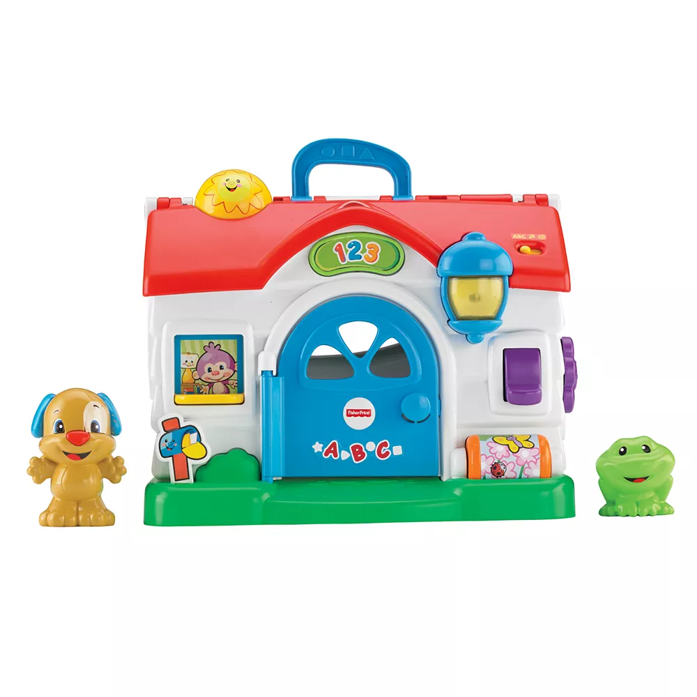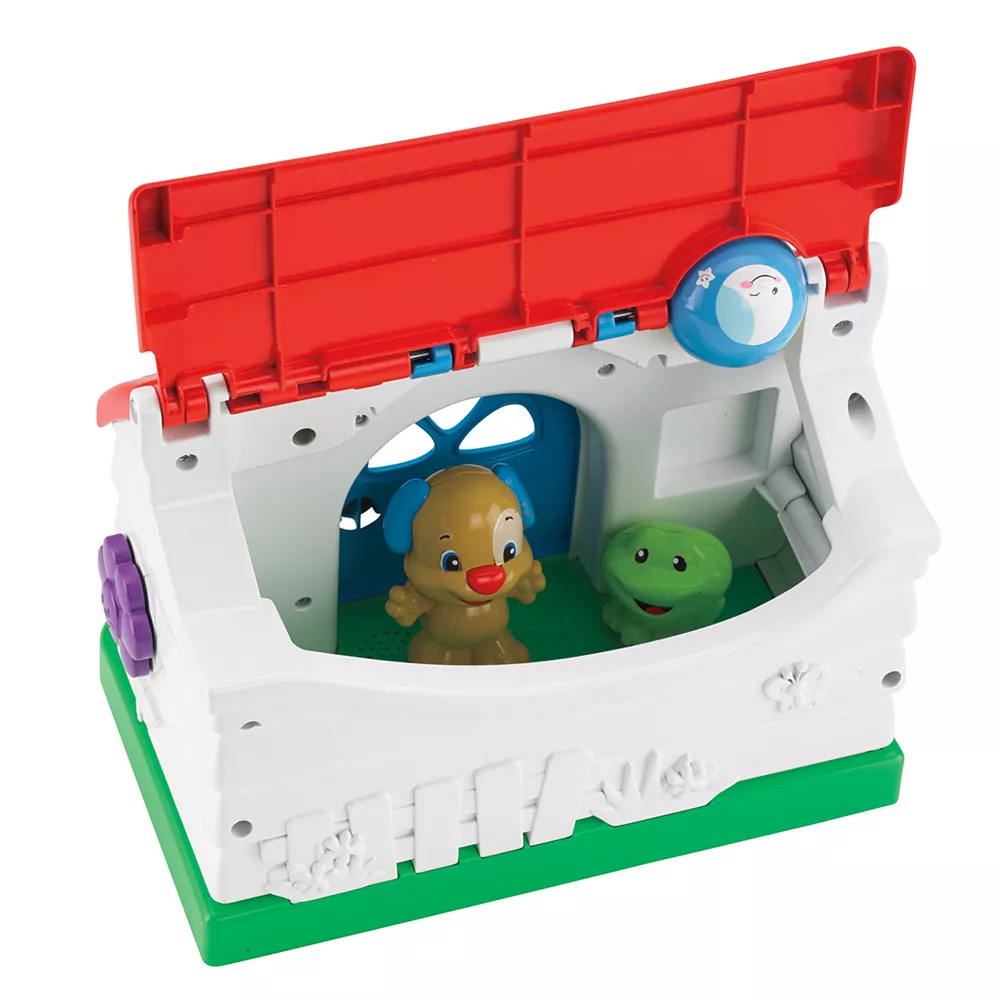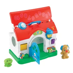 Press buttons, bat at the roller ball, toggle the light switch and more, to learn about letters, greetings, weather and opposites with this Fisher-Price Laugh & Learn Puppy’s Activity Home.
