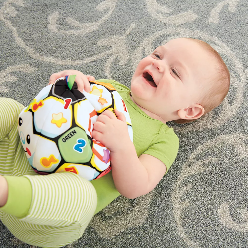 With fun sounds, songs and tunes, this Fisher-Price Laugh and Learn Singin’ Soccer Ball encourages active play as baby learns numbers, colors and more.