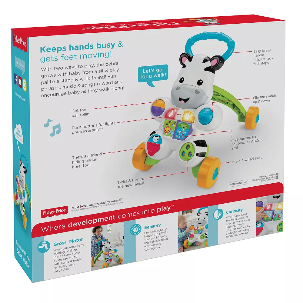 From teaching first words to encouraging first steps, the Fisher-Price Learn with Me Zebra Walker is the kind of first friend you want for your little one.