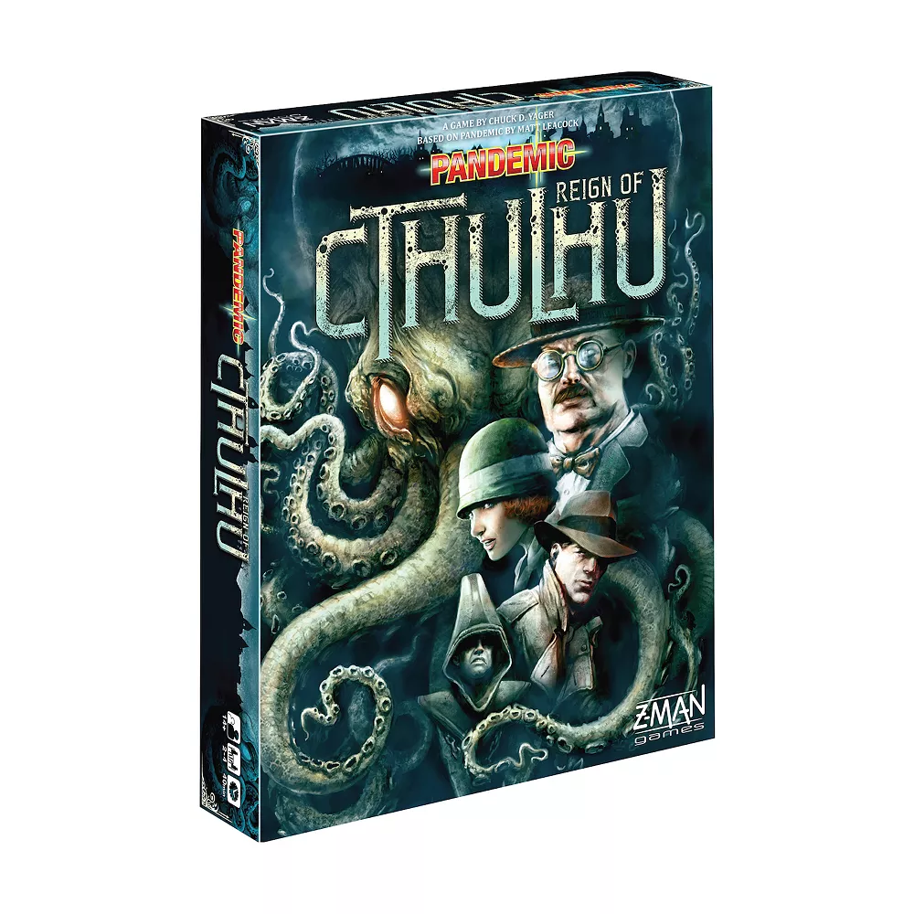 In Pandemic: Reign of Cthulhu, players work to shut down cults and ward off monsters while attempting to seal the gates. Travel between key locations in four cities central to the Cthulhu Mythos as you make use of your investigator’s unique ability to stem the tide of evil. But be warned: Investigating the depths of chaos and madness will stretch your sanity to the limit.