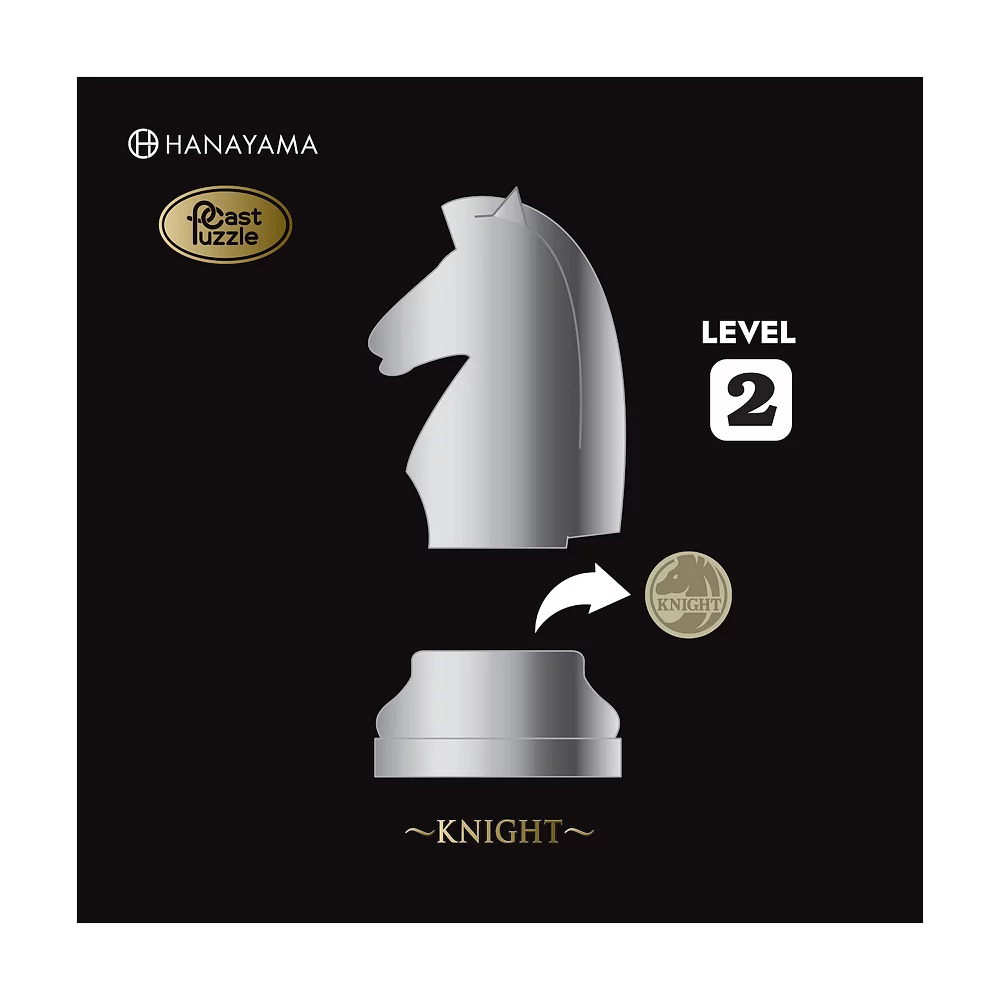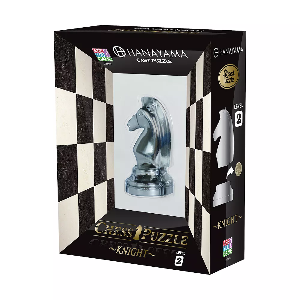 Hanayama Chess Piece Puzzles are brain teasers built into high quality chess puzzle pieces. Each cast metal, chrome-plated chess piece requires a different solution to open it and collect the cast-plated gold token hidden inside.
