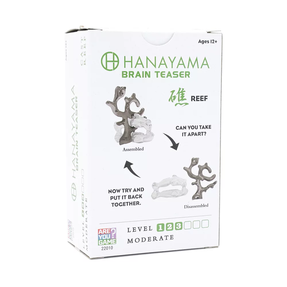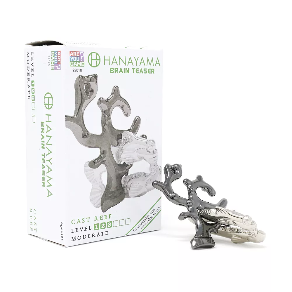 This pair of gobies is living together in a coral reef. Separate them from the coral, and then put them back together again. Inventor Akio Yamamoto wrote, “In the summer of 1997, I saw two mackerels that had somehow managed to get into the sardine tank at the aquarium. Watching the two fish unable to blend in with the shoal of sardines made me wonder if they were on a journey of self-discovery. What sort of adventures will they have? Imagining this led to the conception of six cast puzzles based on oceanographic subjects.