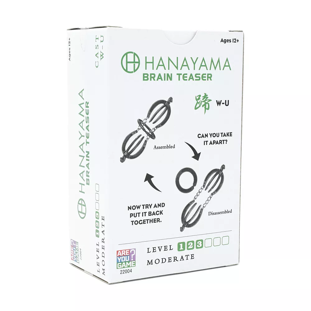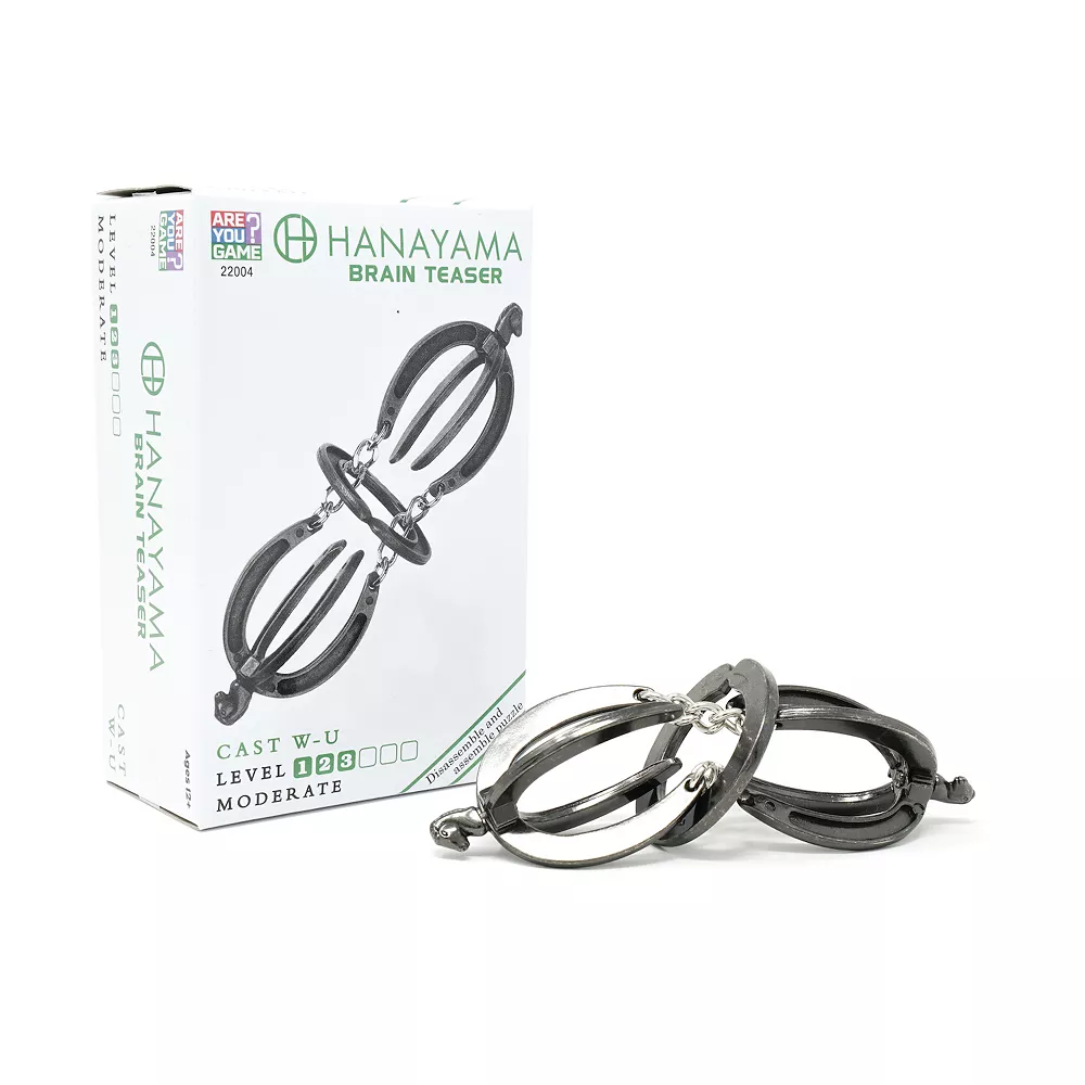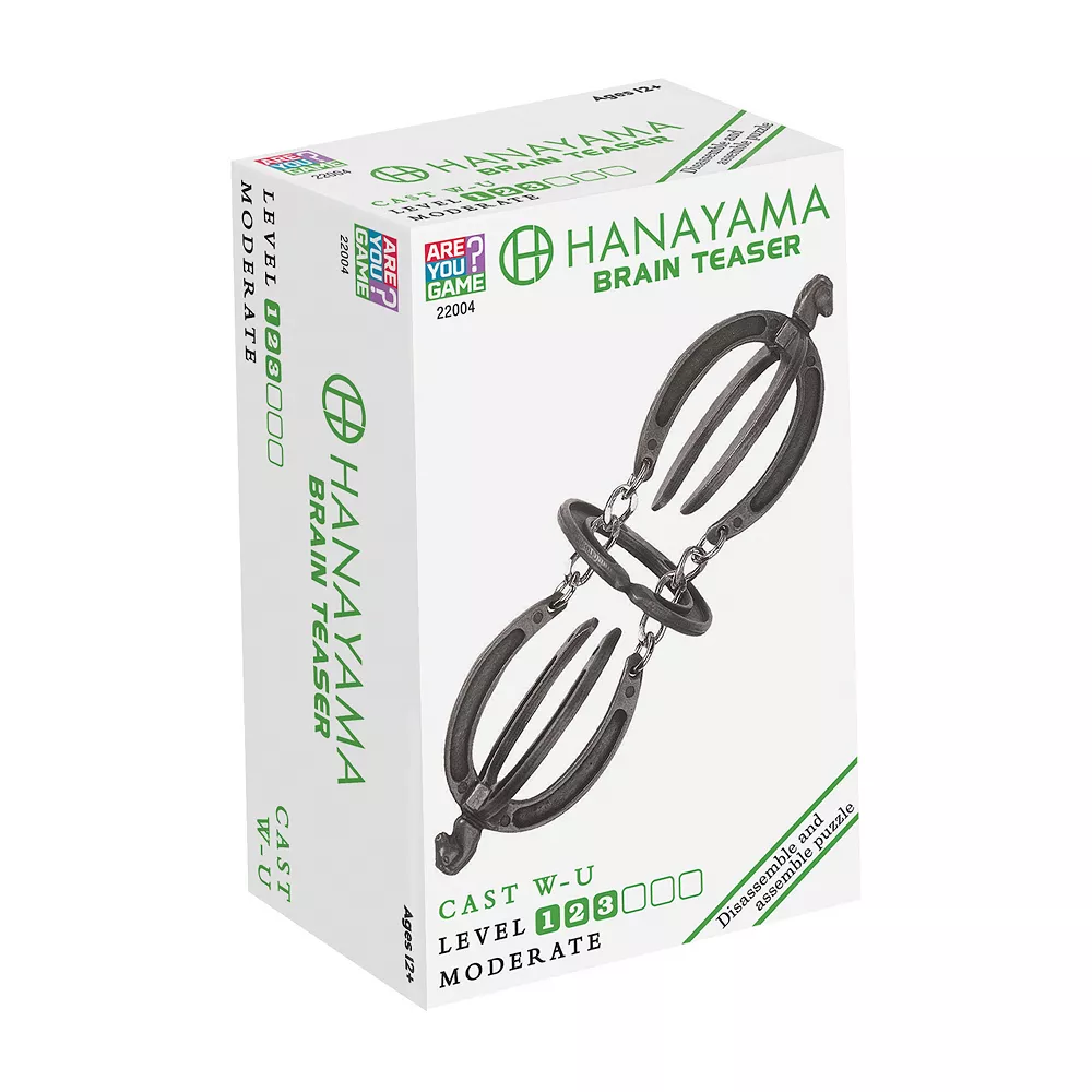 From puzzle master Nobuyuki Yoshigahara: “The idea for this puzzle comes from the ‘Horse’ puzzle, also available in the Cast Puzzle series. The ‘Horse’ puzzle was derived from a puzzle attained in California, one that was made with real horseshoes. With the W-U puzzle, the difficulty is ramped up considerably over the original ‘Horse’ puzzle. I hope your frustration level ramps up, as well. The key word is ‘hoof’.