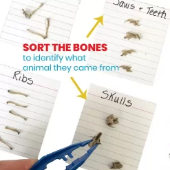 Welcome to the exciting world of biology! Use the included lab tools to dissect real owl pellets, identify animal bones, assemble real animal skeletons, and conduct experiments to turn hard bones into rubbery bones.