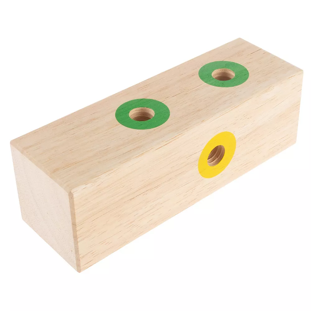 - The block is made from wood and is sanded smooth to be safe for little hands. The included screwdriver and screws are also constructed from wood and are painted in bright, vivid colors.