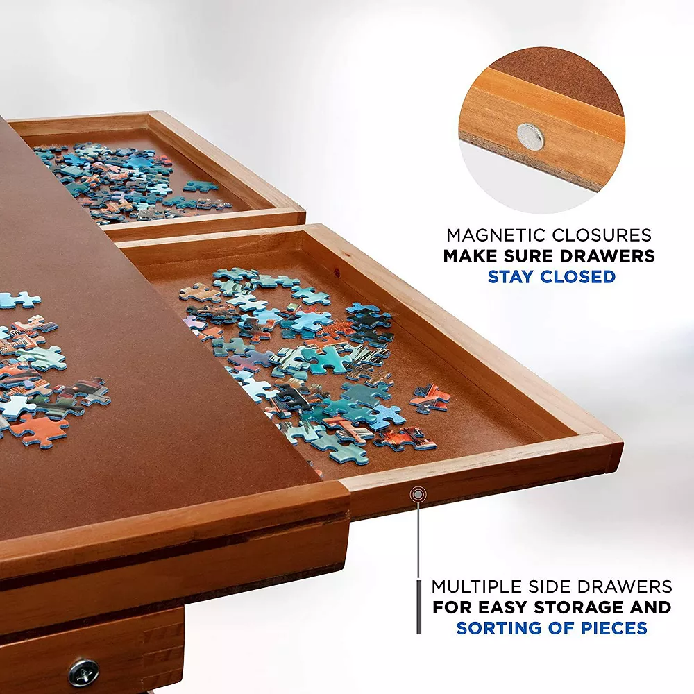 Love working on big puzzles but you don’t have any jigsaw puzzle board or puzzle sorter that saves the messy look of pieces piled across the table? With this Puzzle table with drawers, you get a dedicated puzzle organizer for future play. The included puzzle sorting trays are ready to protect your game from any mess. The puzzle storage allows you to organize your pieces & discreetly store them in the future. This portable puzzle table for adults and kids, is perfect for any occasion!