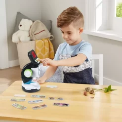 Explore tiny worlds full of huge discoveries with the Magic Adventures Microscope™. Young biologists can zoom in on flowers, animals, food, minerals and more using eight double-sided smart slides that activate amazing BBC videos and images. Discover answers to curious questions like: How do leaves changes colors? What do plant cells look like? What is sand made of anyway?