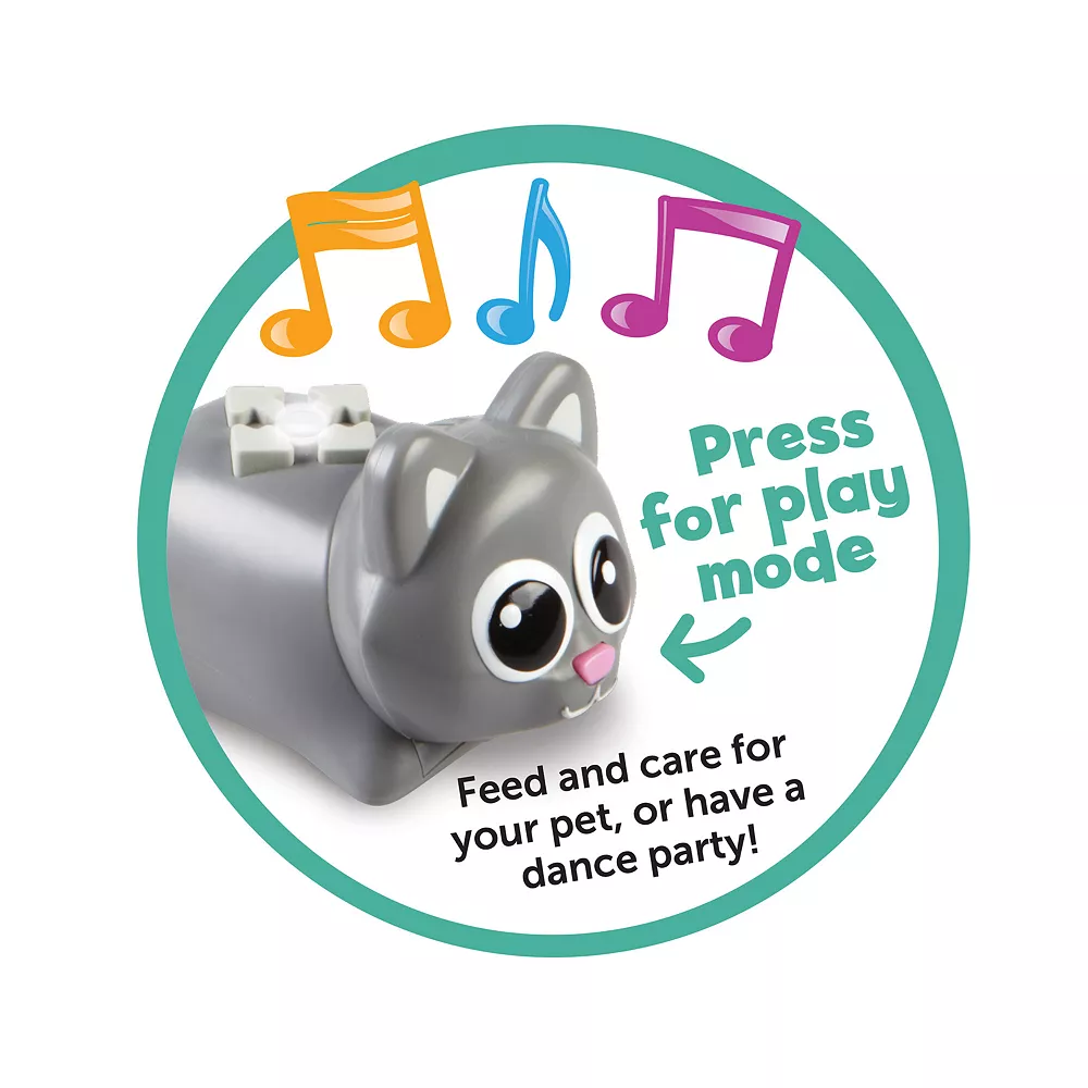 Meet the Coding Critters: your first coding friends! These playful kitten pets bring early STEM concepts to preschool learning through screen-free coding. Kids code along with their new pets, storybook adventure, and help the curious Scamper and sneaky Sneaker have a playtime they’ll never forget! Each storybook coding challenge unfolds in the Coding Critters’ fun pet playset – can you code Scamper to play hide and seek, catch the butterfly at the end of her cat toy, or catch Sneaker after a ride down the slide? In addition to following along with the storybook’s coding challenges, you can also use the pet playset to design your own code games and more! The Coding Critters also double as cute interactive pets – press Scamper’s nose to activate Play Mode, where you can feed, pet, and take care of your new kitten robot pal! You can even make her dance and sing a silly song!