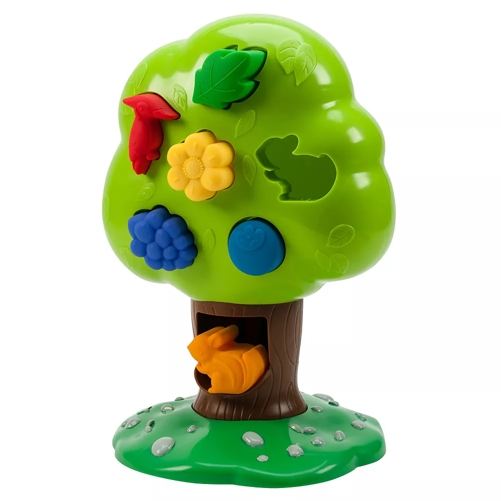 - Includes tree shape sorter with surprise sliding action and 6 shapes to sort