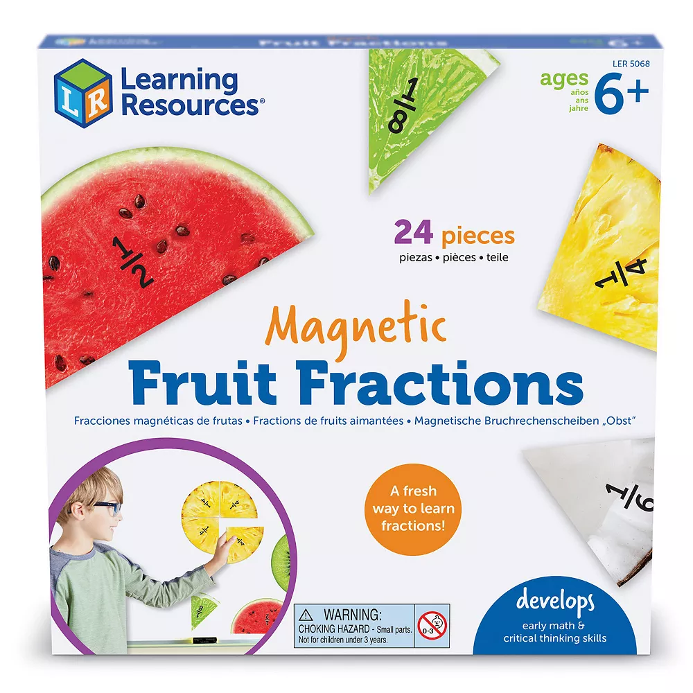 - Ages and Stages: Specially designed with little ones in mind, the Magnetic Fruit Fractions helps kids as young as 6 build critical thinking and elementary math skills!
