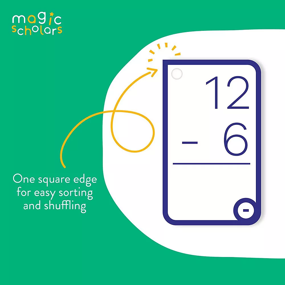 Each flashcard pack comes with 2 metal sorting rings and a fun storage box for easy organization and storage. Easily sort, shuffle and master difficult math problems. Each card has a square edge for sorting and shuffling.