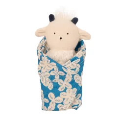 This little goat pairs perfectly with the nostalgic clover-patterned burp-cloth made from a breathable and absorbent cotton-gauze fabric.