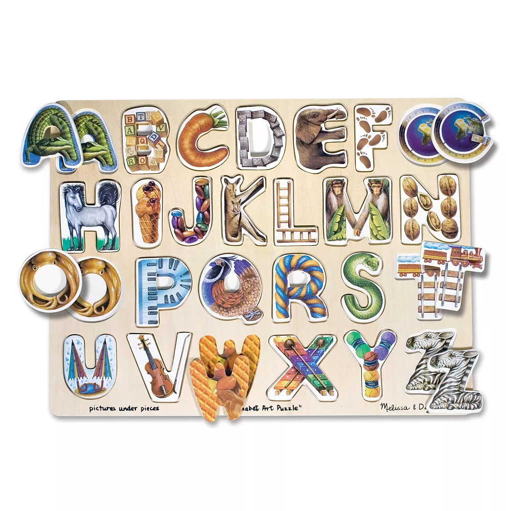 Featuring exciting illustrated pieces like the Acrobatic Alligator and ZigZag Zebra, children will love learning while puzzling with this alphabet art board from Melissa & Doug.