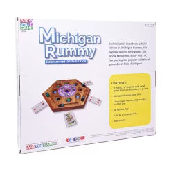 - Solid Wood Game Board with Chip Troughs and Felt Feet, Michigan Rummy Game Disc, 96 Betting Chips, 2 Decks of Playing Cards, Instructions