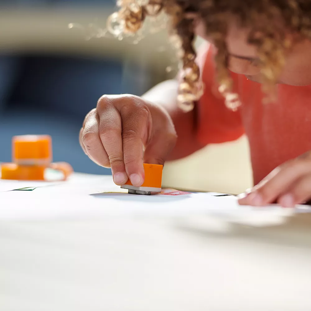 Numberblocks One and Two give this activity set the stamp of approval. Children can use colorful stamps and ink pads to create their own Stampoline Park.