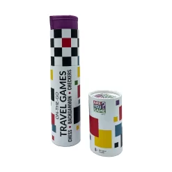 Sophistication, boldness, and ease of travel make this 3-in-1 Travel Chess, Backgammon, and Checkers Set the best game to get lots of wows! Made with colorful, bold, and premium quality leather with an easy-to-fasten closure, this game will meet all of your travel gaming needs. All of the components fit inside a zipped compartment so no pieces are lost.