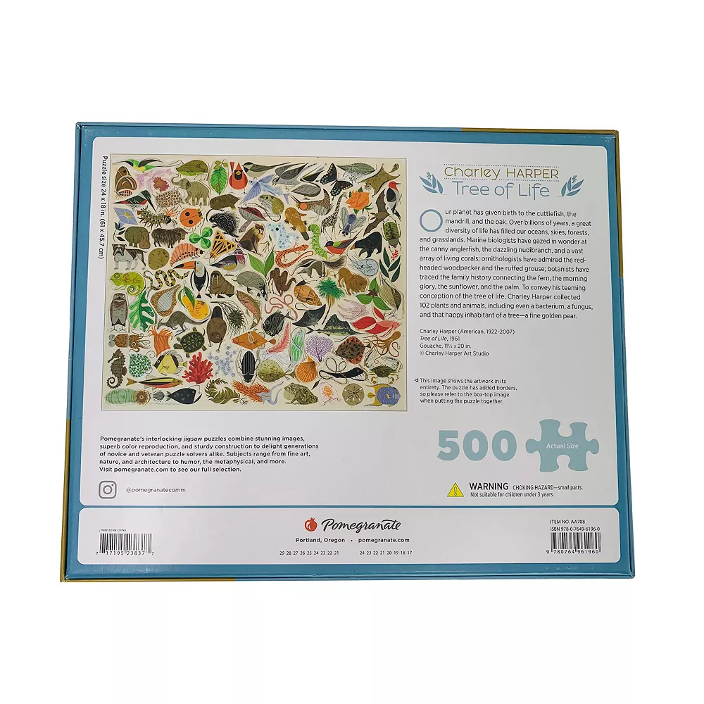 To convey his teeming conception of the Tree of Life, Charley Harper collected 102 plants and animals, including even a bacterium, a fungus, and a fine golden pear, for this composition – a fun and fascinating 500-piece puzzle.