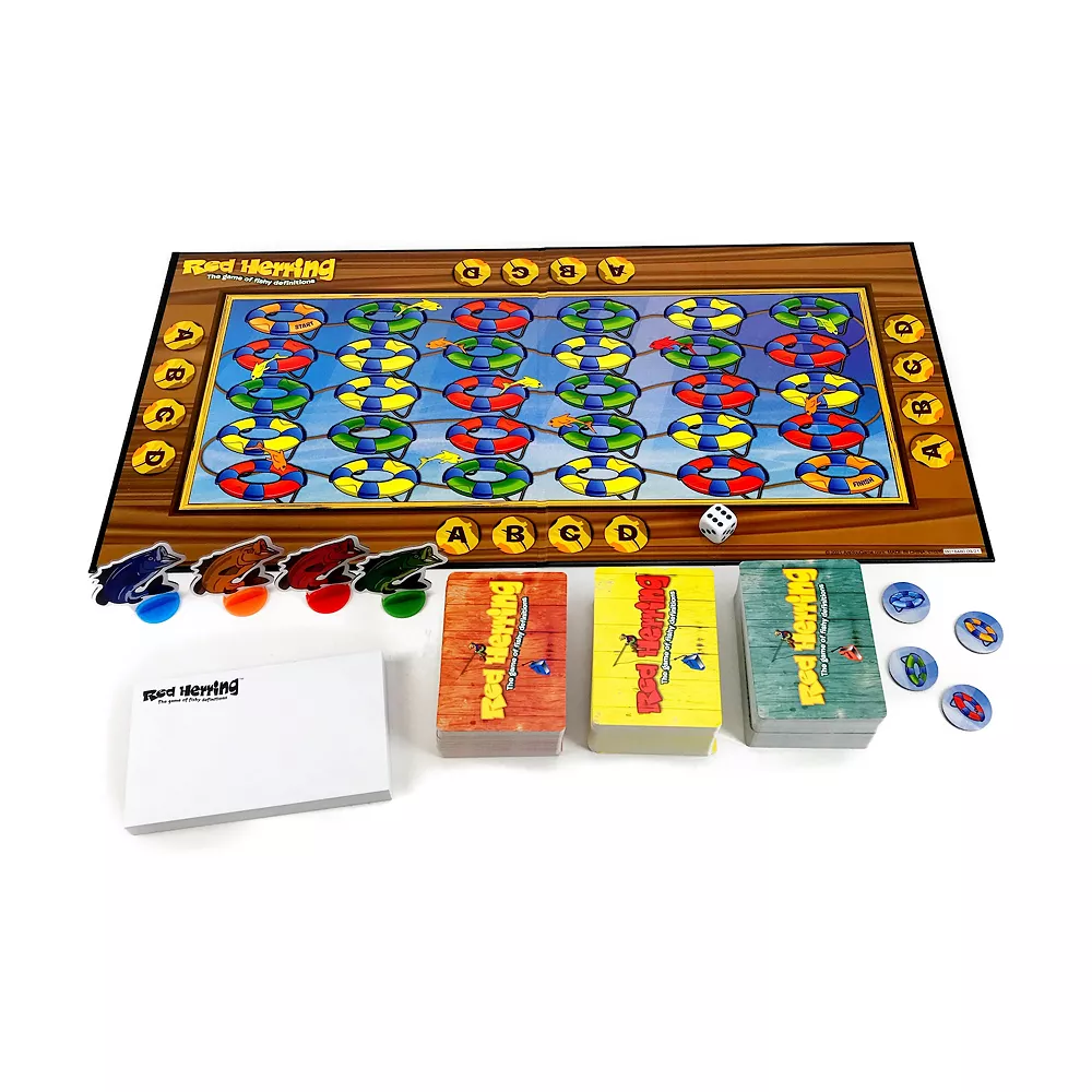 Q: What is a Red Herring? A: The new party game that twists traditional “word definition” games on their sides! Can you detect the real definition among the fakes? If your fish lands on a green or red buoy, choose from a list of definitions, or write your own definitions and try to fool your friends!