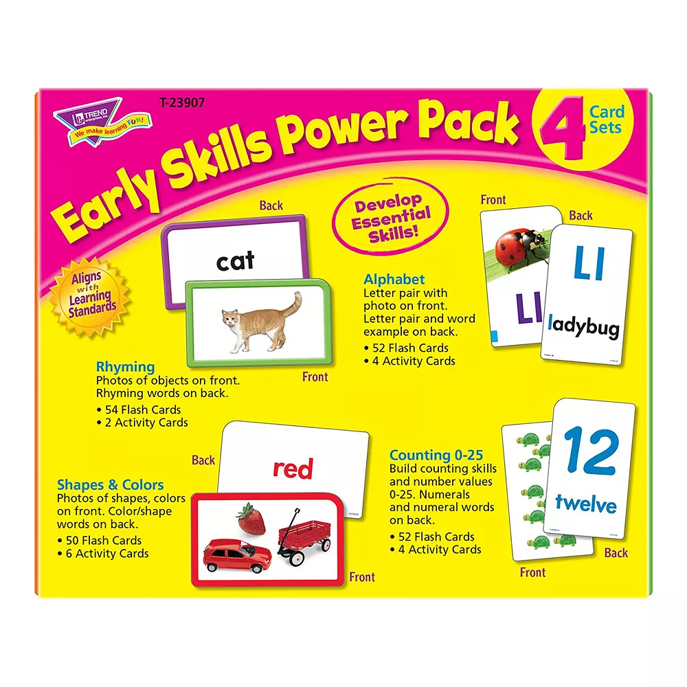 - Contains 4 card sets that review and reinforce key early learning skills.