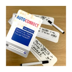 - 200 Autocorrect Cards, 4 Guessing Boards, 4 Dry Erase Markers, Instructions